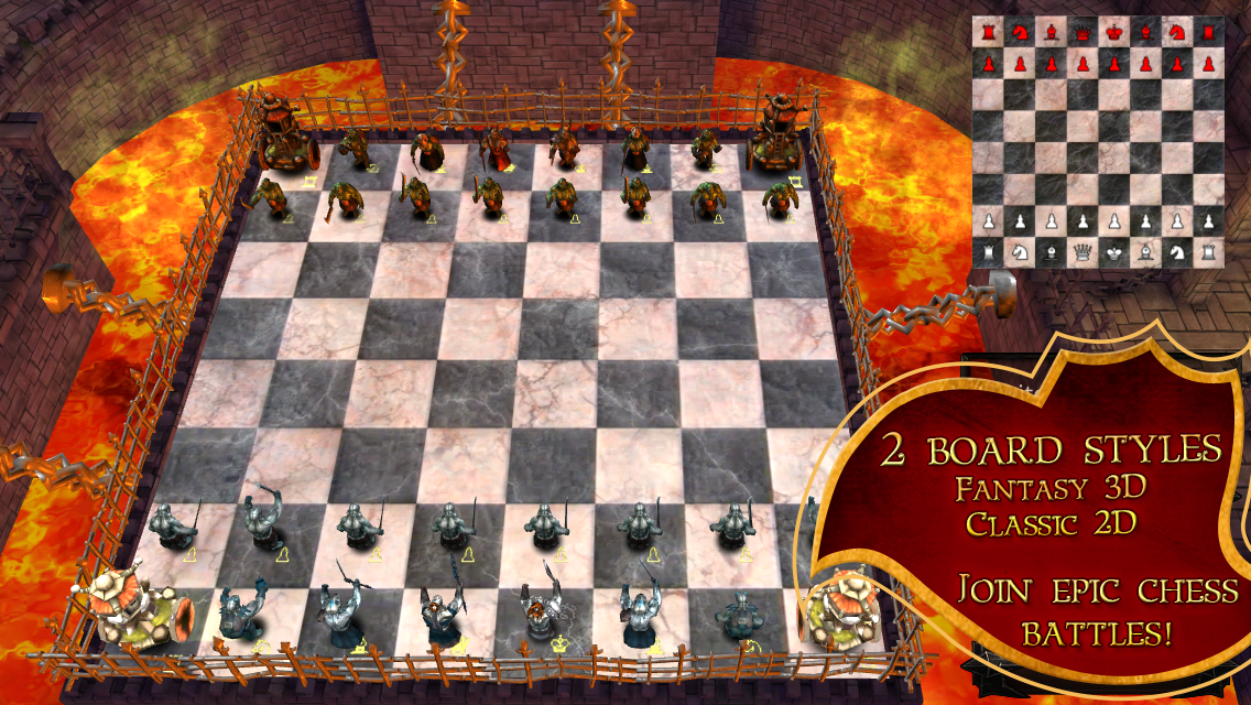 heyecanlı 3D grafik efektleri ve alevlerin içine bir gemide ordu olarak bakan 3D fantezi tarzında animasyonlu adet setleri ile App Store üzerinde kullanılabilir! Arkadaşlarınızla ya oyunun ustası eşsiz bir satranç motoru ve gösteri karşı oynayın! Orklar, Zombies, İnsanlar ve daha sonraki güncellemeleri geliyor: ● animasyonlu 3D fantezi tarzlarda parçalar setler arasında sizin ordu seçin!