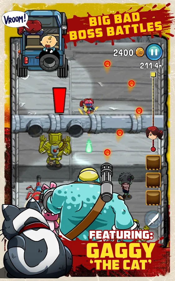 Silah alarak ve teker teker öldürerek zombi kıyamet kaçış! Anne ve baba bulmak, engelleri kaçının aç zombi ateş, Intelin toplamak, sokak kedileri silah olarak, tuzaklar etkinleştirmek ve gidin.