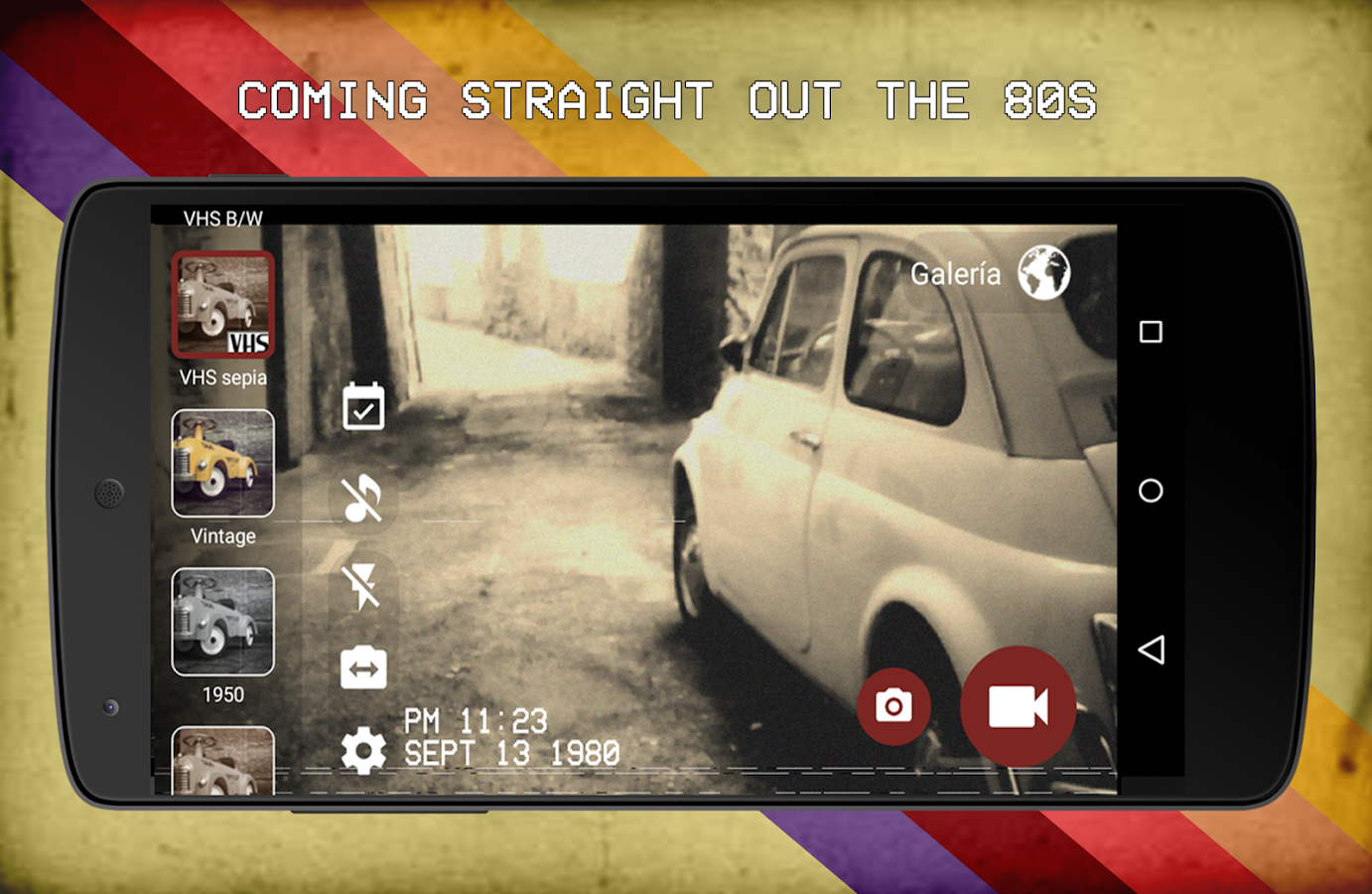 VHS Camera Recorder,"Pear Labs" tarafından geliştirilen android meya ve video yazılımıdır.Program ile çektiğiniz fotoğraf ve videolara çeşitli efektler uygulayarak siyah beyaz görünümler yapabilirsiniz.